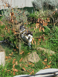 Irgendwie kamen die Zweibeiner dann auf die Idee, wir könnten zu Fuss runter, statt mit der Bahn. Ui, das war dann aber doch ziemlich steil da runter! Immerhin gab es einen kleinen Bach!Aber es gab da kaum mehr andere Leute, so dass wir gemütlich Pause machen konnten - trotz Duca.